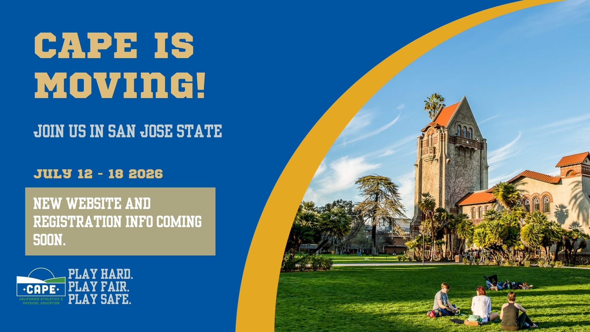 The California Athletics Physical Education (CAPE) workshop promotes interest in professional advancement for Physical Educators at the Elementary and Secondary levels. Through a comprehensive curriculum, the workshop provides opportunities for professional development in the areas of Physical Education, Health, Recreation and Dance.